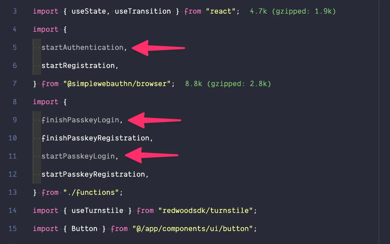 passkeyLoginfunction (lines 21-36) - You can delete the