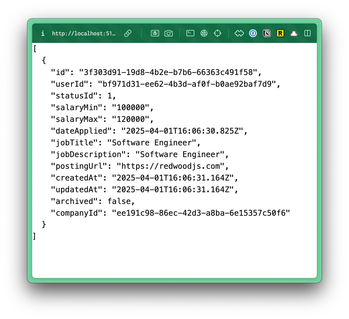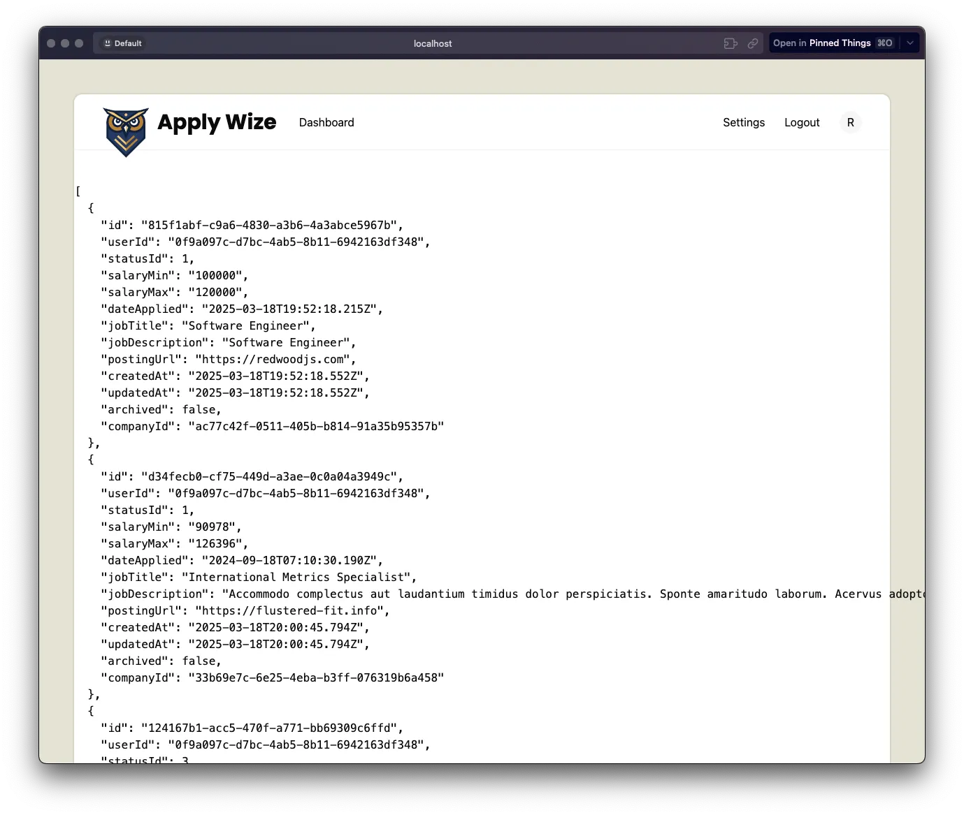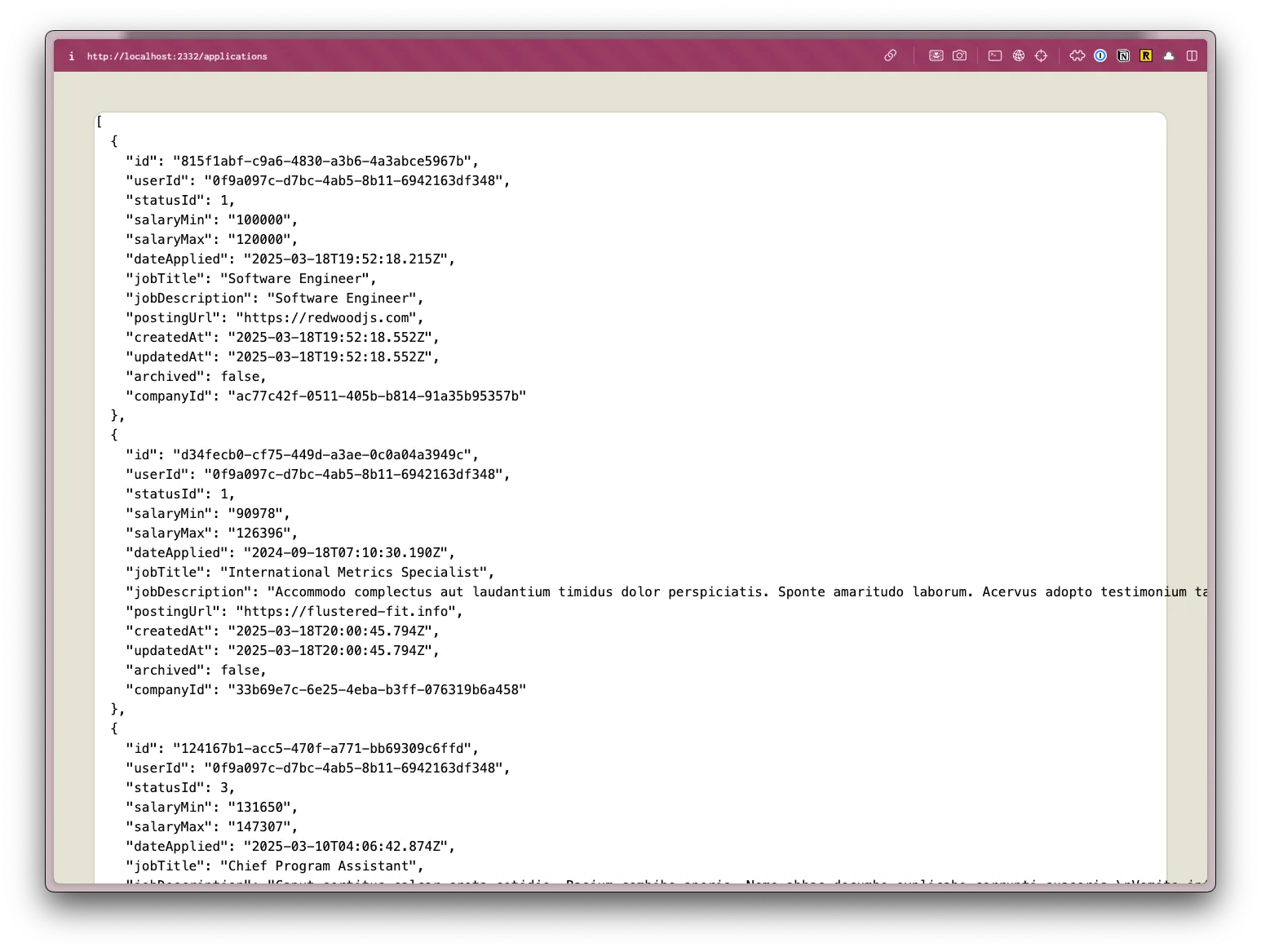 Section titled “Displaying the Job Application Data”Once you’ve added some data, let’s go back to our application and display the data on the page.