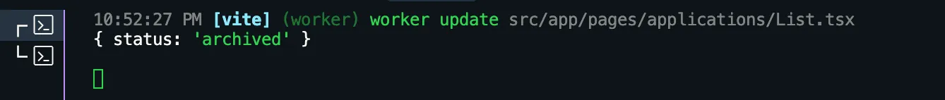 You can test this in the browser, by clicking on the Archive button. You should see the URL change to include /applications?status=archived and the entry applications table should be empty.